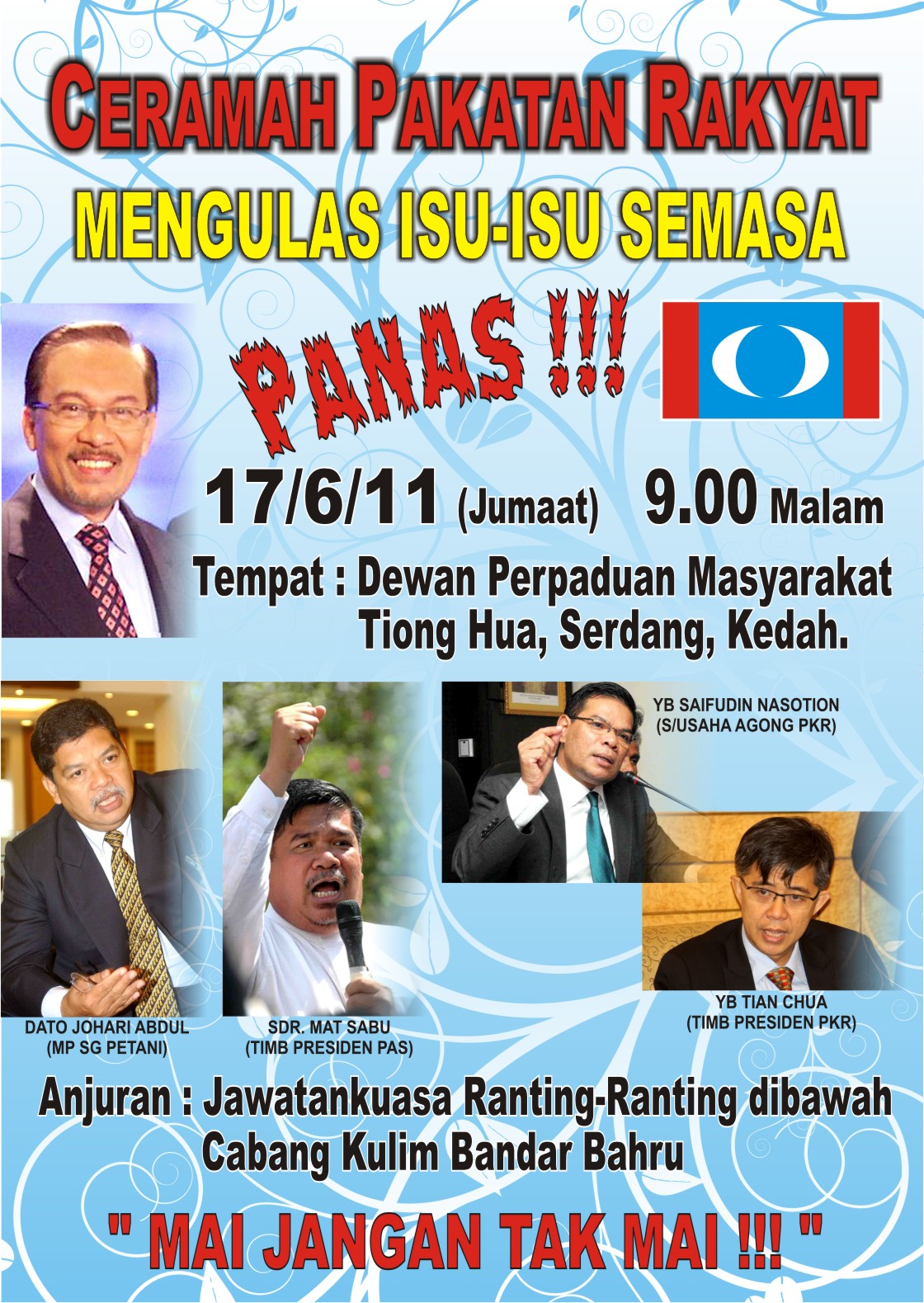 | The Spirit of Lubok Kawah/Semangat Lubok Kawah Posted: 15 Jun 2011 11:30 PM PDT | Ceramah di Felda Jengka 4, Maran, 17.6.11 Posted: 15 Jun 2011 08:39 PM PDT Ceramah yang diadakan oleh Parti Keadilan Rakyat Cabang Maran di Felda Jengka 4 pada 17.6.11 membawa erti yang besar. Ianya dibuat bersempena dengan pemfailan saman oleh 700 peneroka Felda sekitar Jengka menyaman Felda mengenai manipulasi Felda terhadap peratusan perahan KPG mereka yang akan difailkan pada jam 11.00 pagi di Mahkamah Tinggi Temerloh,