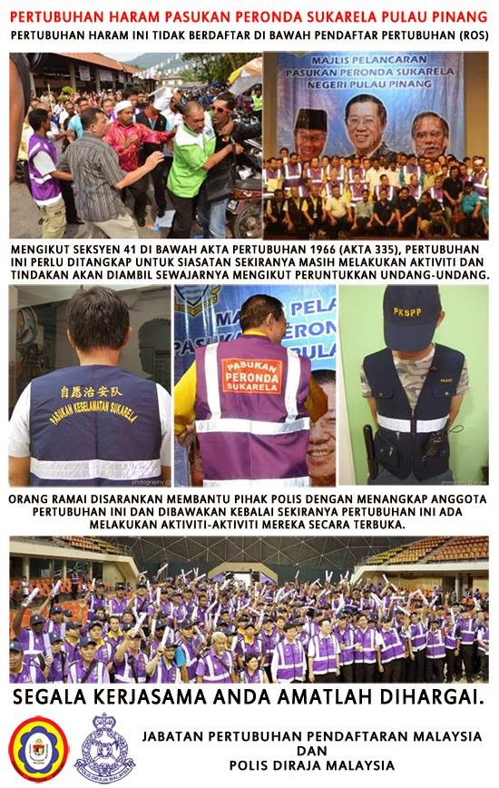 Tindakan kerajaan DAP mempertahankan PPS yang tidak berdaftar & diharamkan oleh POLIS dan ROS jelas amat tidak bertanggungjawab. Sudah terang lagi bersuluh ramai rakyat P.Pinang menjadi mangsa pukul PPS tetapi KM masih lagi mempertahankan mereka . Lebih teruk lagi , ibarat melepaskan geram Guan Eng mempersoalkan pulak mengapa kerajaan Persekutuan melantik JKKK yang juga tidak berdaftar dengan ROS . adakah dia tau fungsi JKKK berbeza sekali dengan PPS kerajaan DAP ??